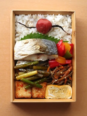本日の弁当: 豚肉と茄子ピーマンの味噌炒め → 人参の甘煮 → 生芋こんにゃくの炒め煮 → れんこんのおかか煮 →···