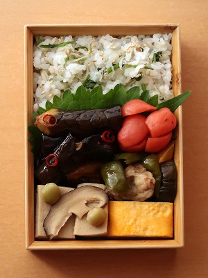 本日の弁当: 秋茄子の揚げびたし → 高野豆腐の煮物 → 二十日大根のりんご酢マリネ → 豚肉と茄子ピーマンの味噌炒め···